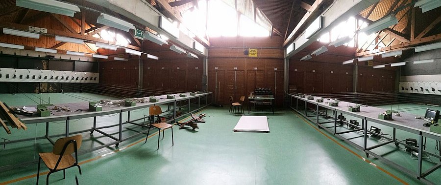 - Bei der Ankunft unserer Schützen noch im Aufbau begriffen: eine der beiden 10m-Hallen.