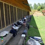 - Nach den Trainingsdurchgängen und den Wettkämpfen war die Ausrüstung komplett durchgeschwitzt und mussten zum Trocknen an der frischen Luft ausgebreitet werden.